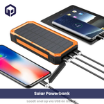 Attention : Le panneau solaire de cette batterie externe est principalement conçu pour recharger la lampe d'urgence intégrée. Vous souhaitez également recharger d'autres appareils ? Nous vous recommandons alors de charger complètement la batterie externe au préalable via une prise électrique pour des performances optimales.